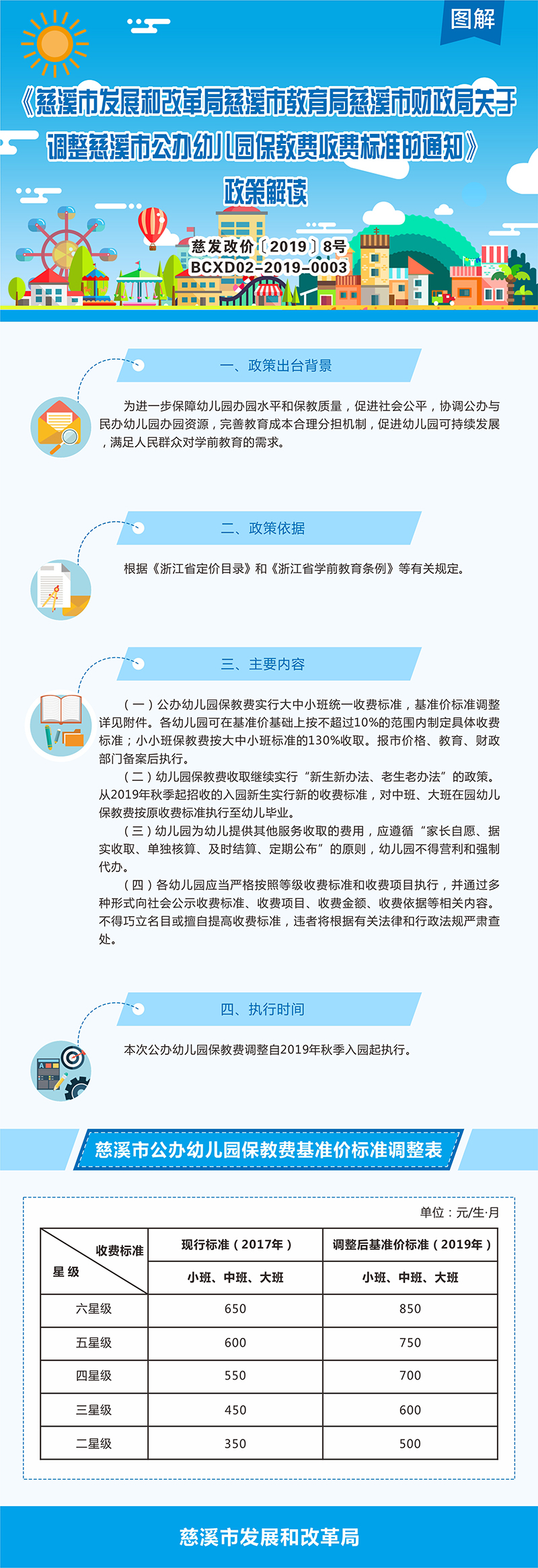 《慈溪市發展和改革局慈溪市教育局慈溪市財政局關于調整慈溪市公辦幼兒園保教費收費標準的通知》政策解讀