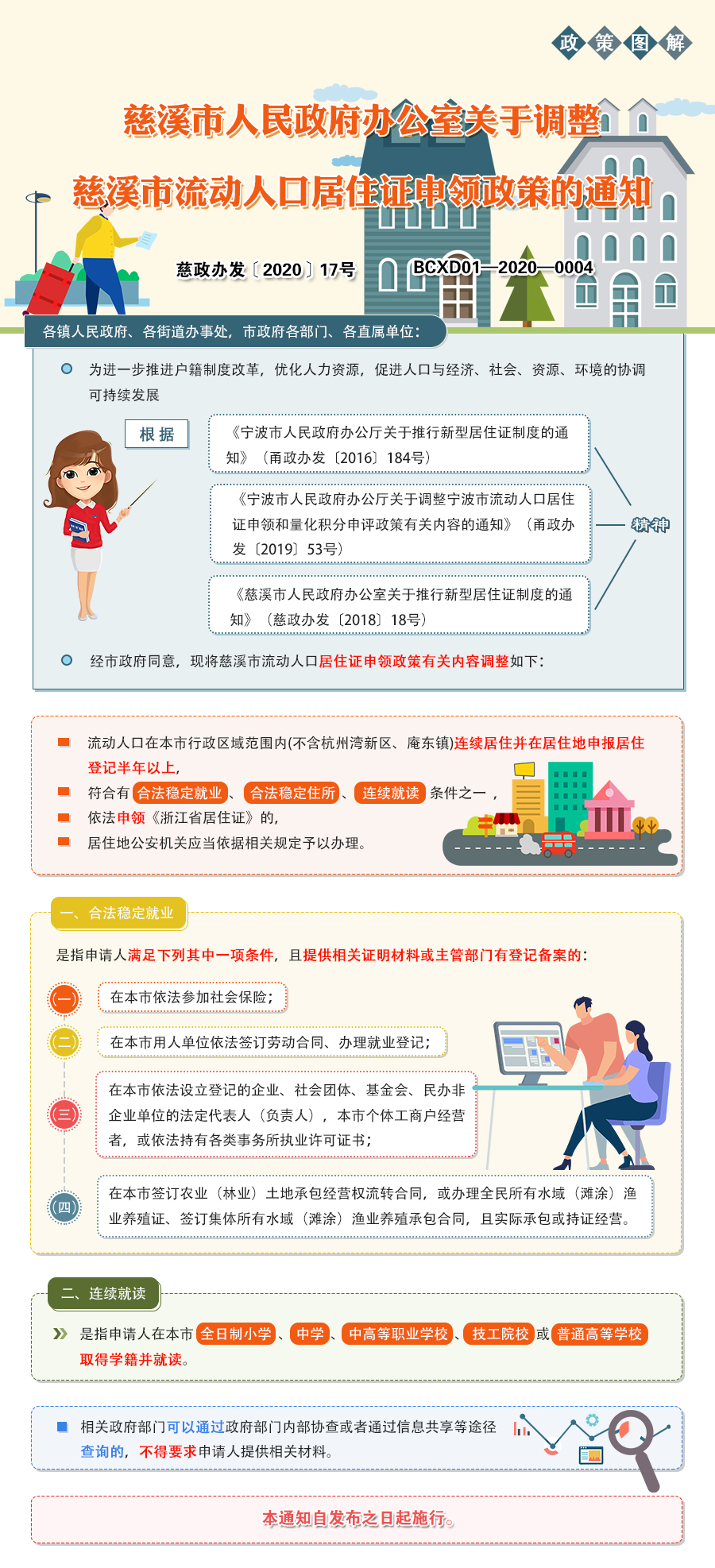 圖解《慈溪市人民政府辦公室關于調整慈溪市流動人口居住證申領政策的通知》