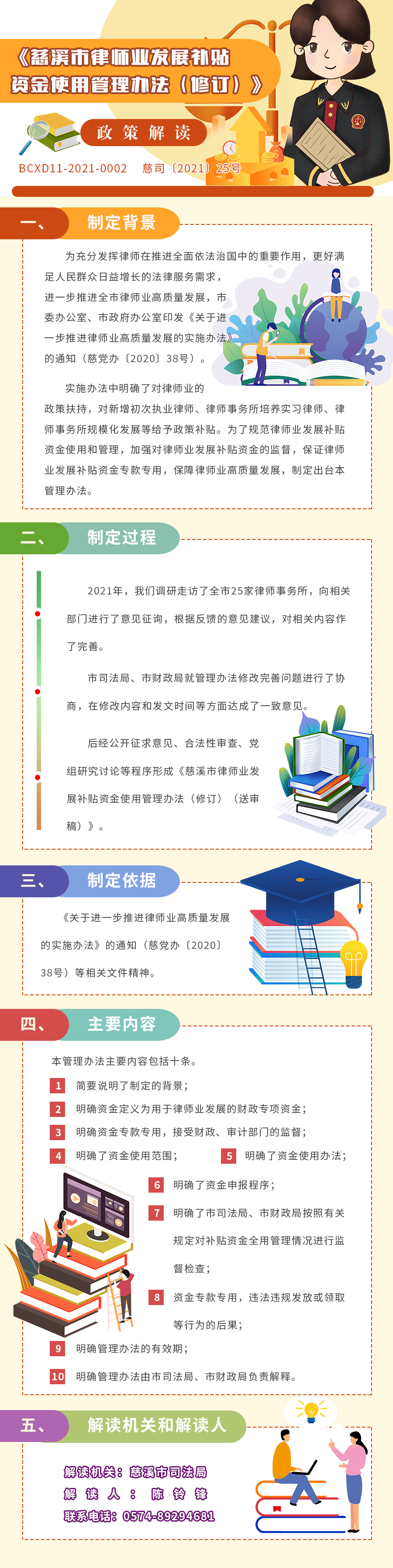 圖解《關于印發(fā)〈慈溪市律師業(yè)發(fā)展補貼資金使用管理辦法(修訂)〉的通知》