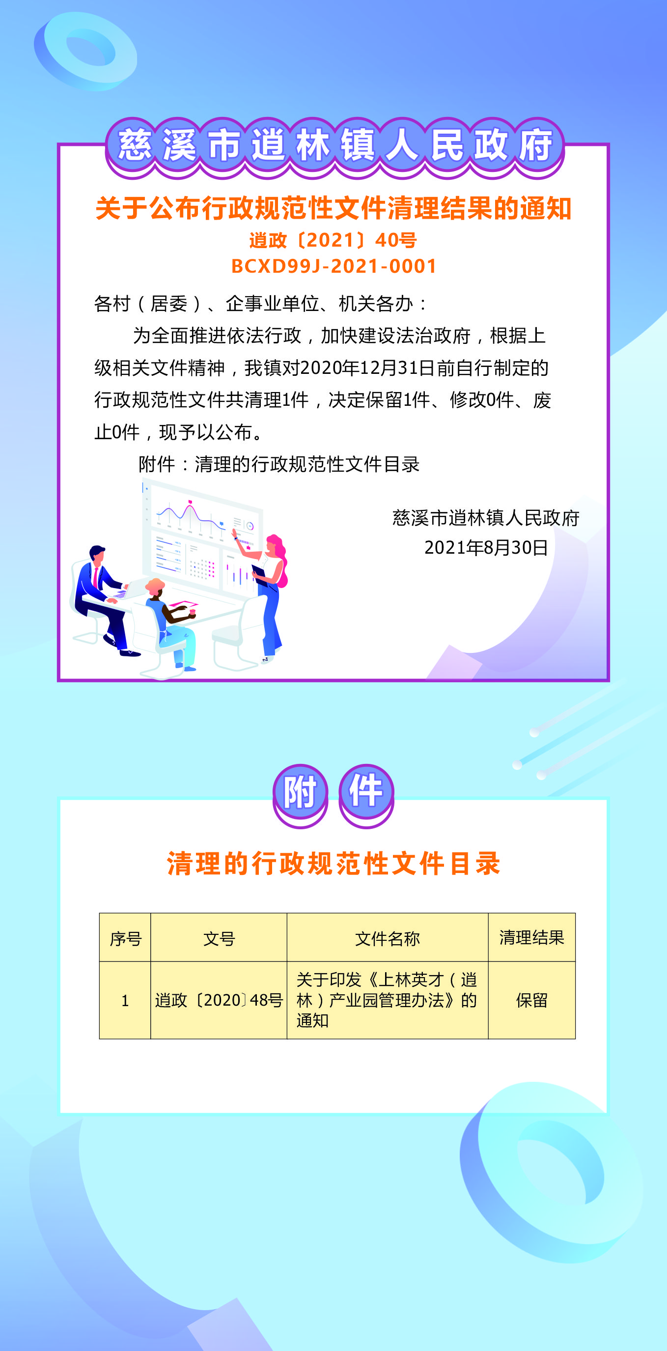 《逍林鎮(zhèn)人民政府關(guān)于公布行政規(guī)范性文件清理結(jié)果的通知》圖解