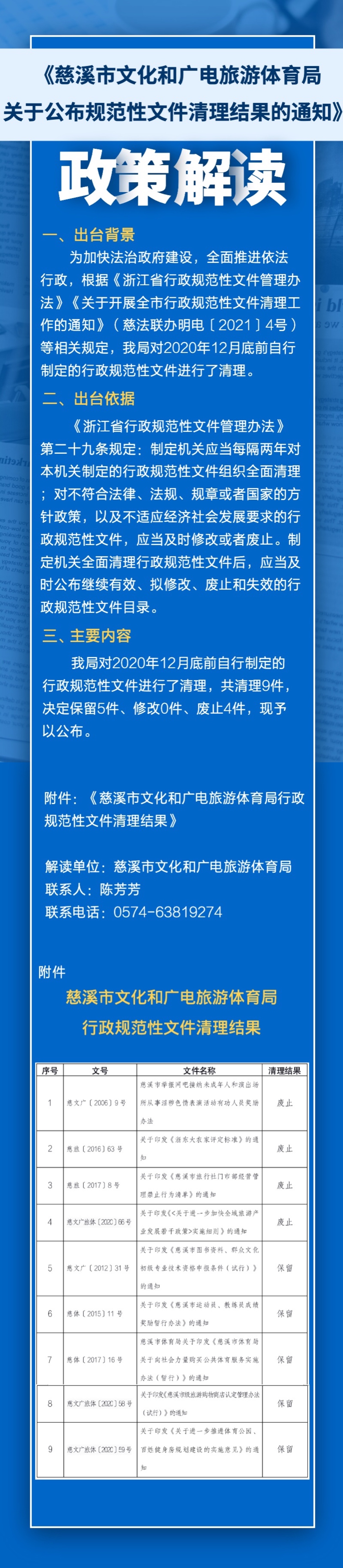 《慈溪市文化和廣電旅游體育局關于公布規范性文件清理結果的通知》的政策解讀