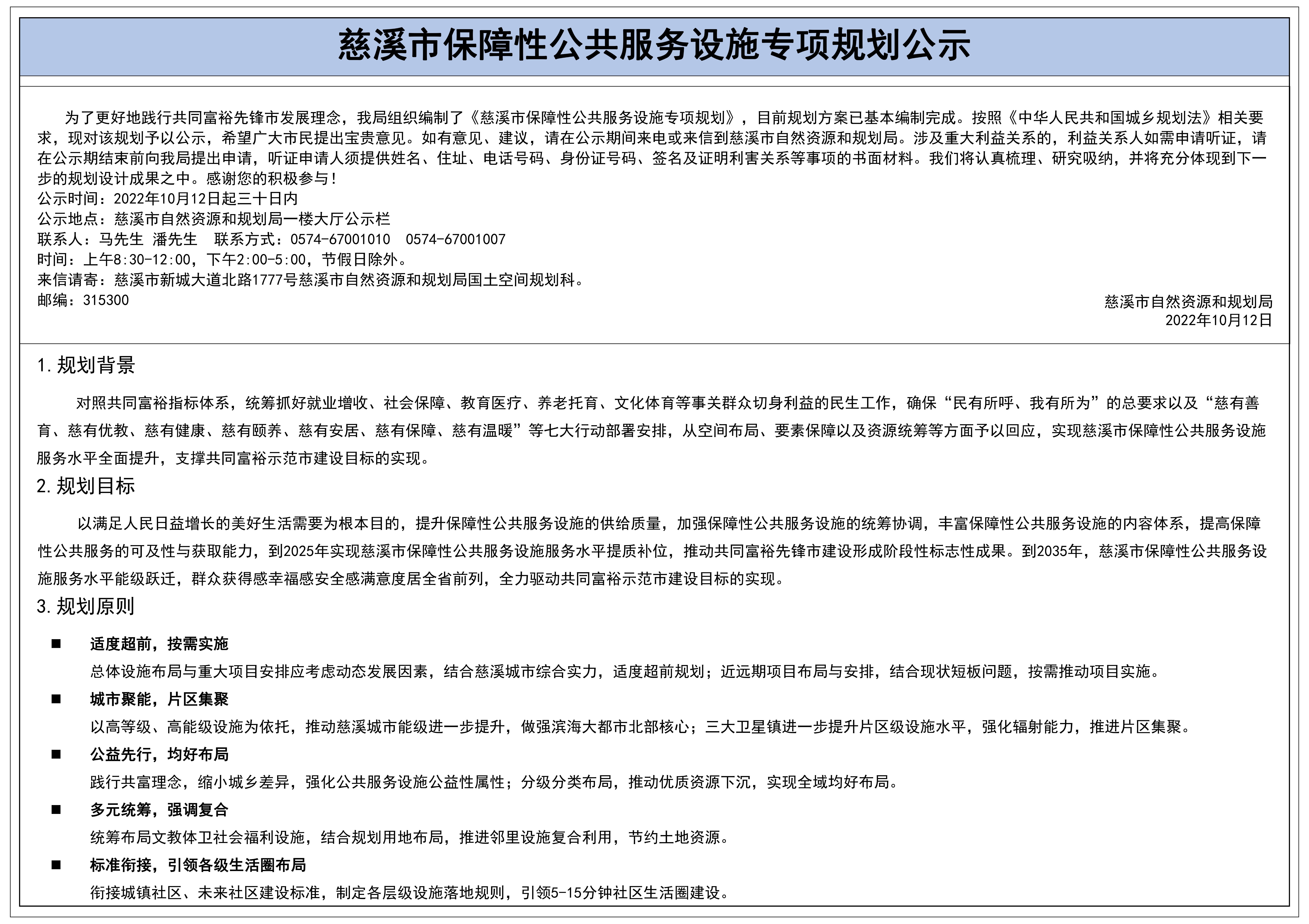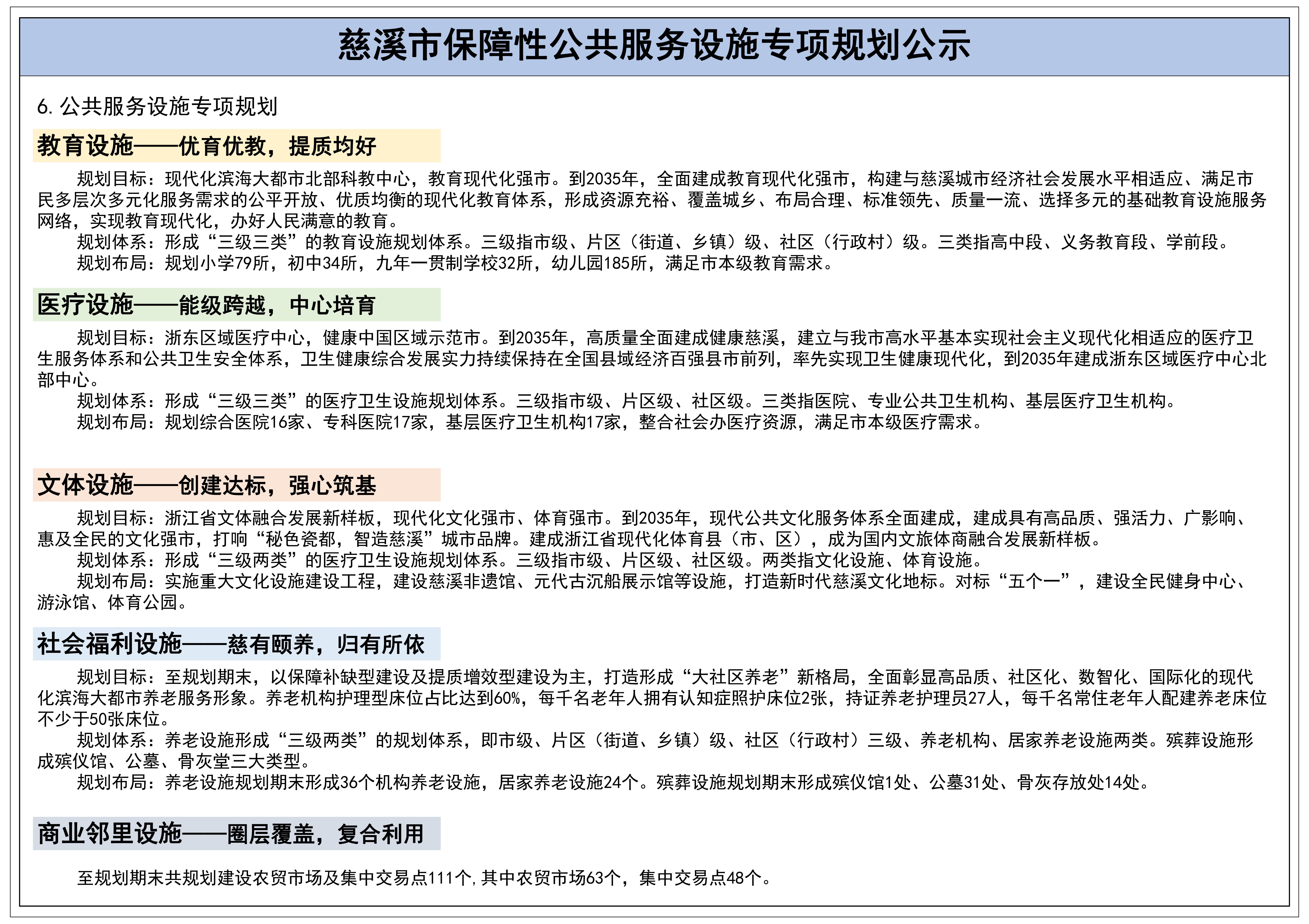 慈溪市保障性公共服務設施專項規劃公示