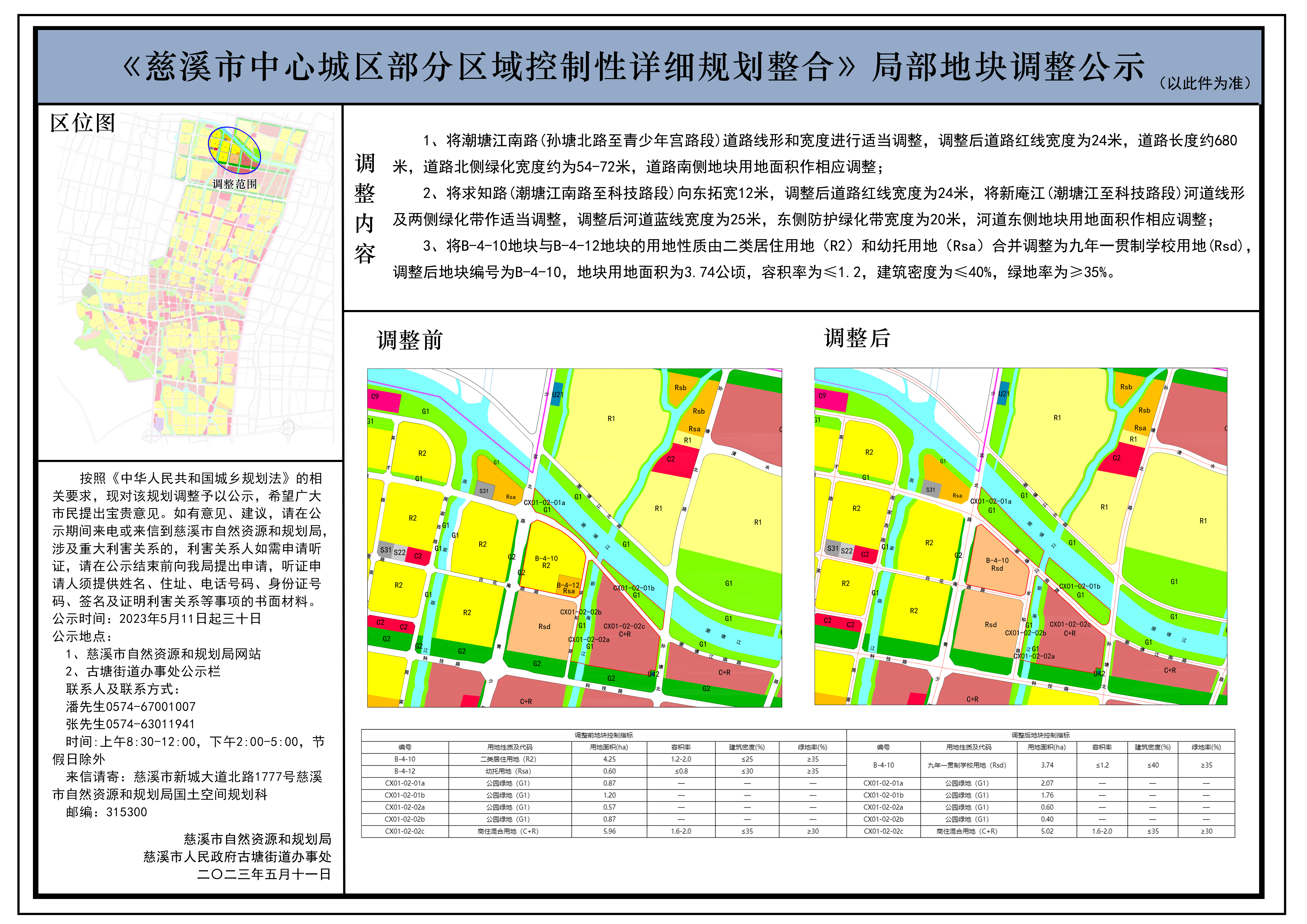 《慈溪市中心城區部分區域控制性詳細規劃整合》局部地塊調整公示