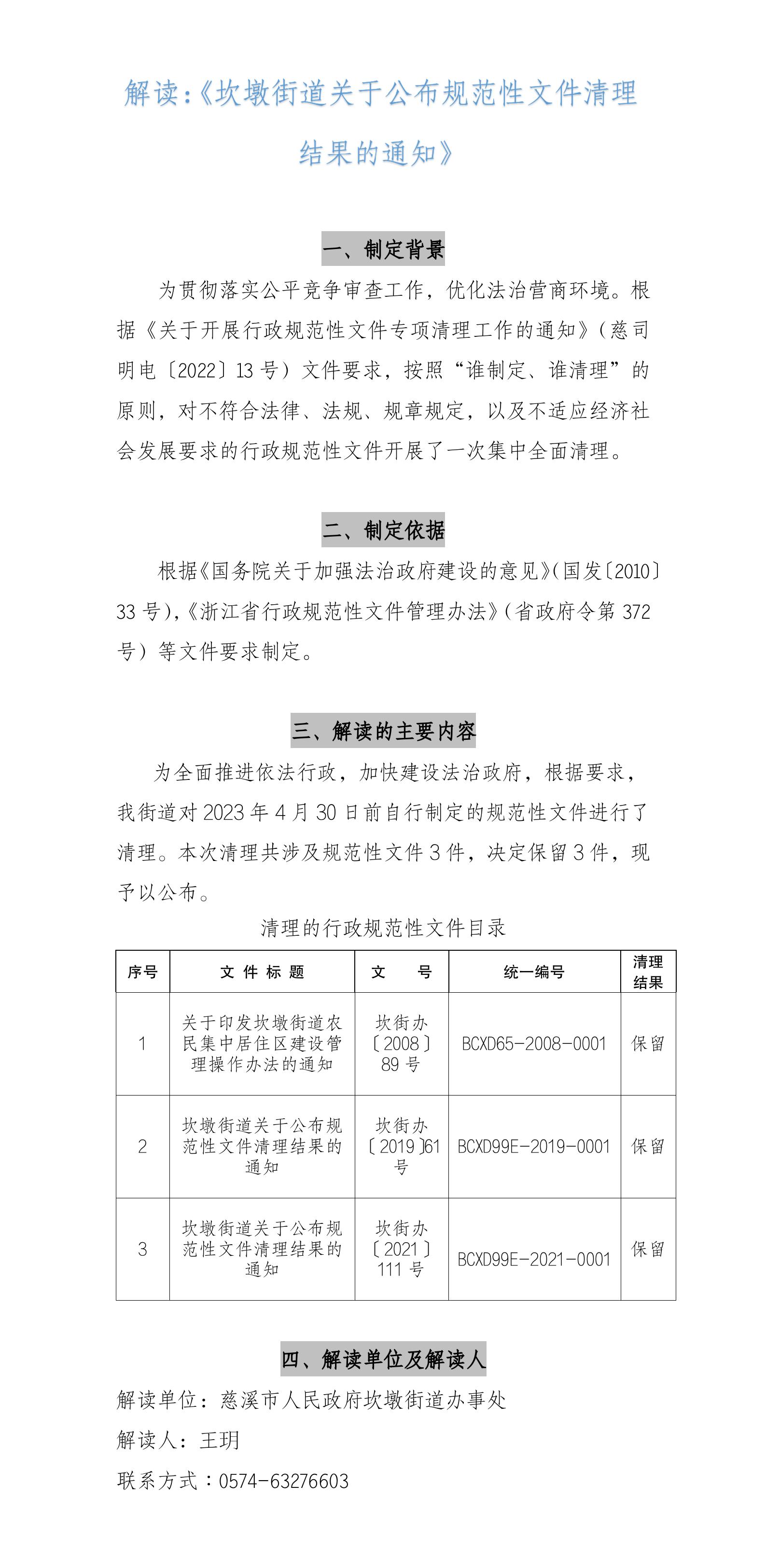 坎墩街道關(guān)于公布規(guī)范性文件清理結(jié)果的通知