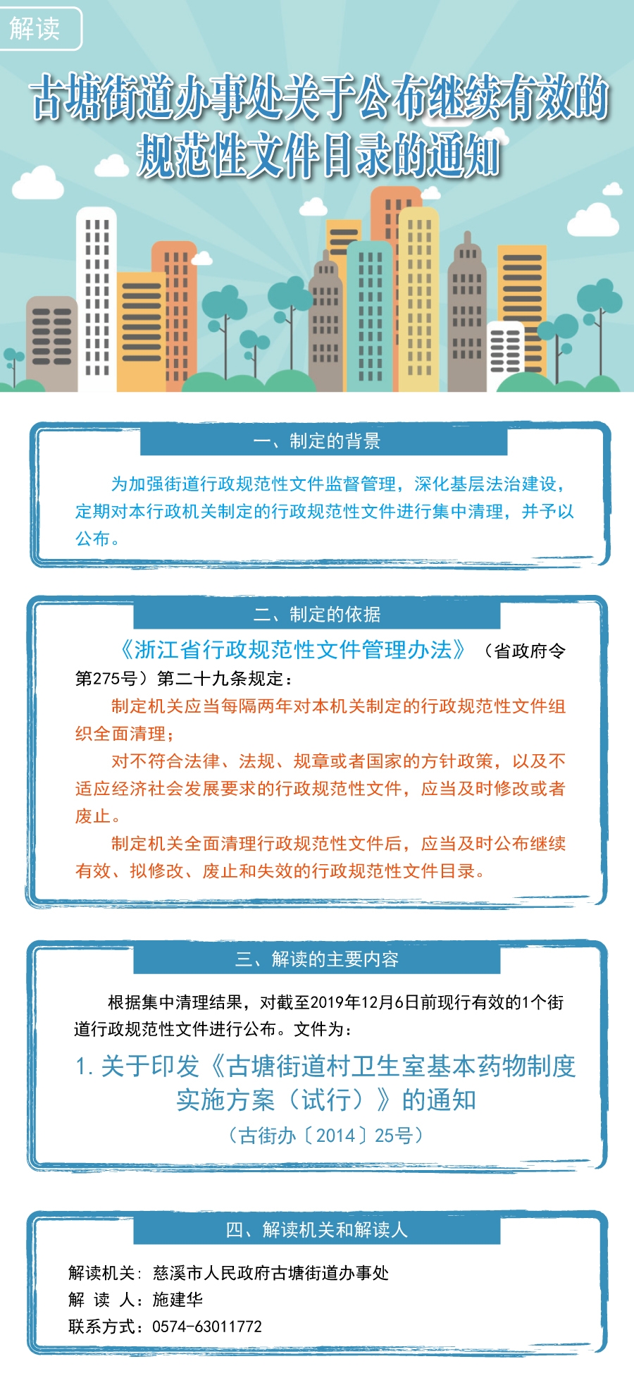 解讀《古塘街道辦事處關于公布繼續有效的規范性文件目錄的通知》