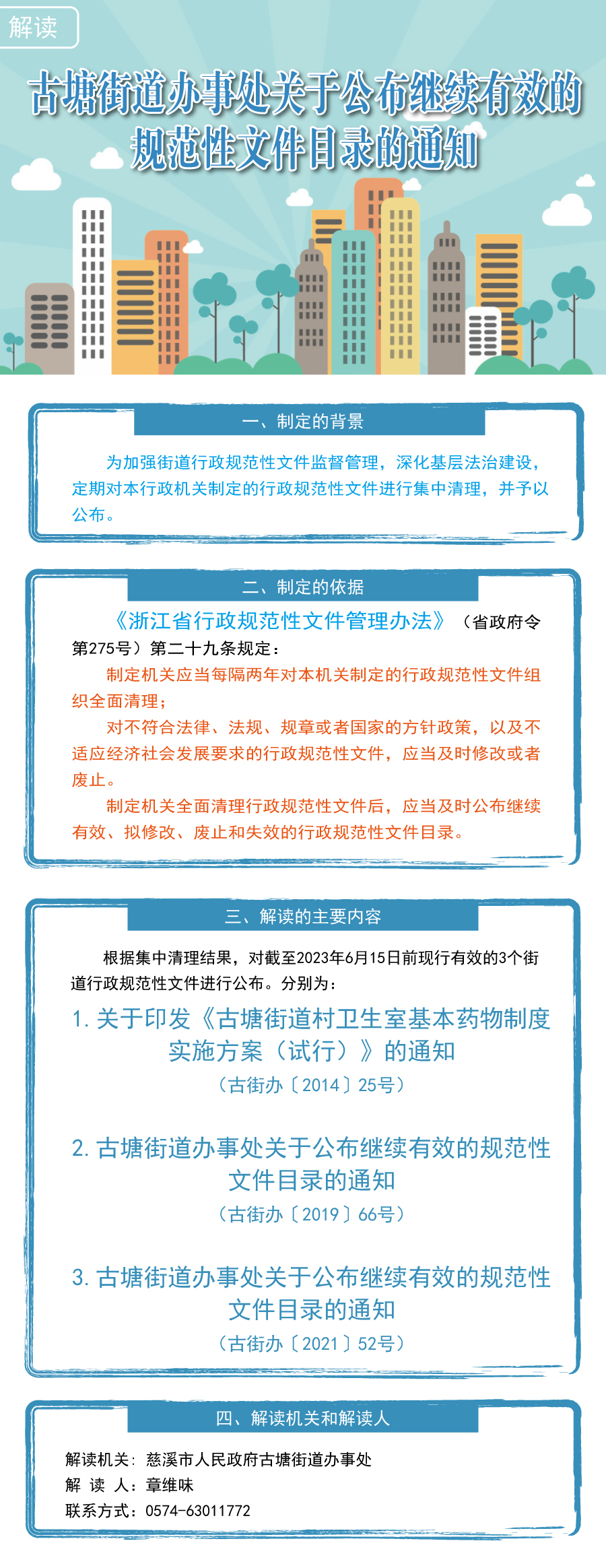 解讀《古塘街道辦事處關(guān)于公布繼續(xù)有效的規(guī)范性文件目錄的通知》