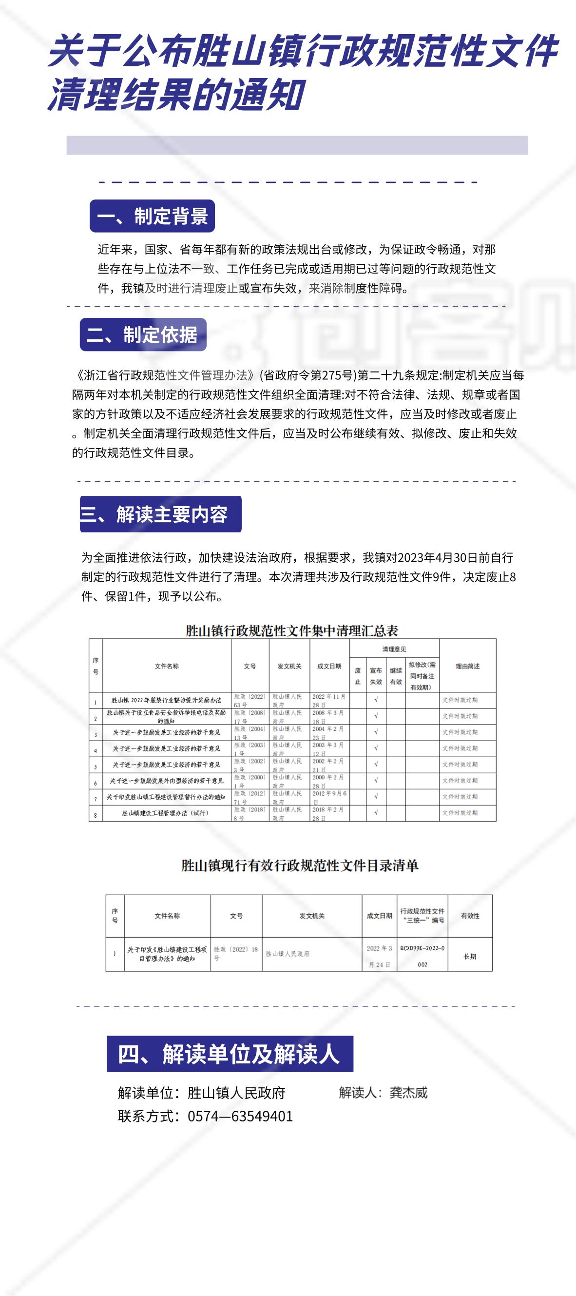 關(guān)于公布勝山鎮(zhèn)行政規(guī)范性文件清理結(jié)果的通知