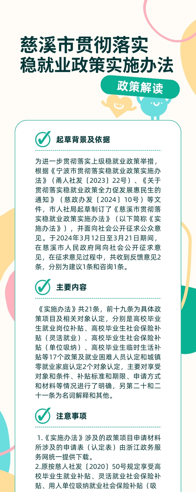 《關于印發〈慈溪市貫徹落實穩就業政策實施辦法〉的通知》政策解讀