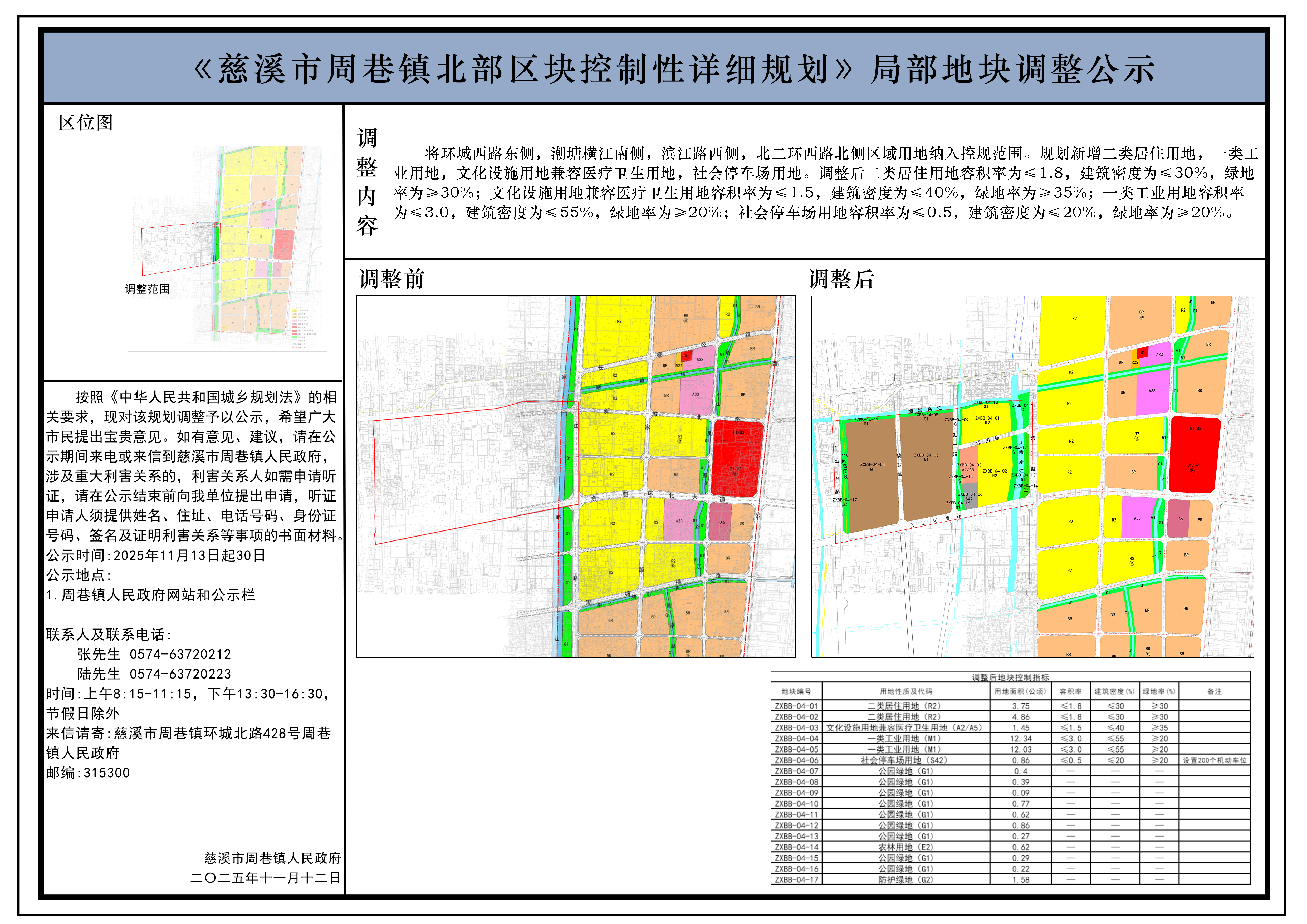為加快片區開發、促進經濟發展,按照《中華人民共和國城鄉規劃法》的相關要求,現對《慈溪市周巷鎮北部區塊控制性詳細規劃》局部地塊調整方案予以公示,希望廣大市民提出寶貴意見。