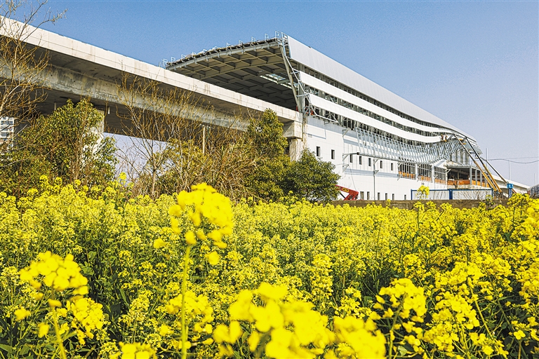 近日,建設工人在寧波至慈溪市域(郊)鐵路龍山站進行外立面施工,為全線通車奠定堅實基礎。