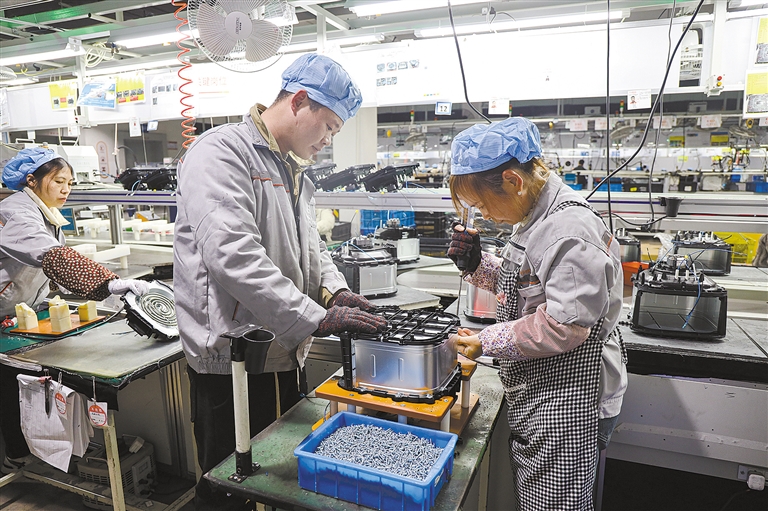 2月24日,位于觀海衛(wèi)鎮(zhèn)的悅達(dá)電子科技有限公司內(nèi)呈現(xiàn)出一派熱火朝天的生產(chǎn)場(chǎng)景。公司五條生產(chǎn)線火力全開,工人們熟練地組裝著空氣炸鍋、戶外燒烤爐等產(chǎn)品。目前,企業(yè)的訂單已排至二季度,正全力搶抓新春“開門紅”,力爭(zhēng)實(shí)現(xiàn)生產(chǎn)銷售“開門穩(wěn)”“開門好”。