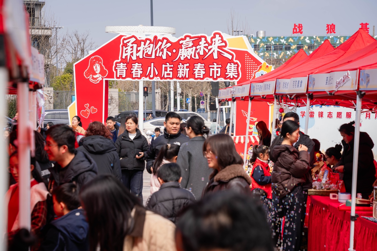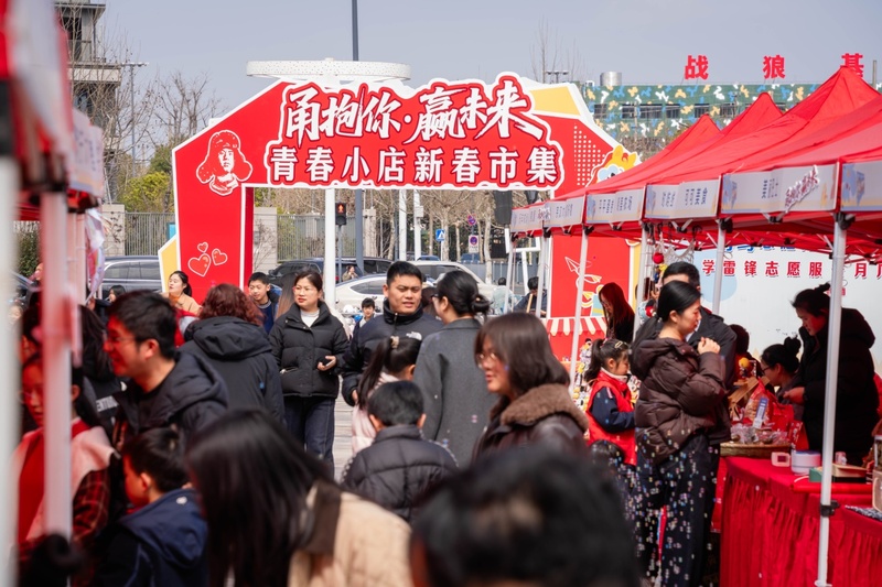 活動現場,志愿服務、青春小店、愛心義賣等90余個攤位依次排開,宛如一條春日里的愛心長河。特色青春小店齊聚一堂,覆蓋文創好物、特色美食、非遺手作等多元業態,打造沉浸式新春消費場景,彰顯青年發展型城市的創業活力。