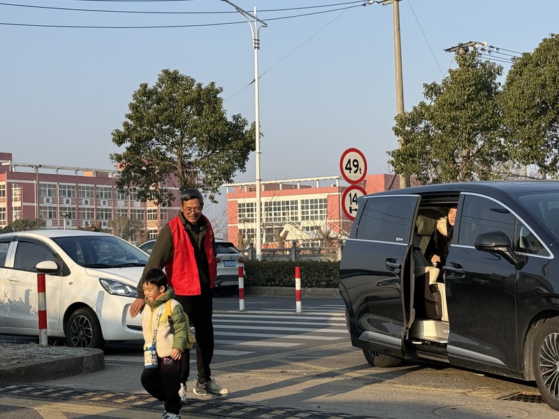 每天孩子入園前,家長志愿者們便早早來到幼兒園門口,穿上醒目的紅馬甲,化身成校園門口的“家長護衛隊”。他們主動協助園內老師,承擔起孩子入園、離園的護送工作,還耐心疏導校門口的交通秩序。執勤過程中,家長志愿者與保安師傅、值班教師默契配合,充分彰顯了團隊協作的力量:有人站在車輛前方揮手引導,讓車流有序緩行;有人貼心拉開車門,溫柔迎接孩子下車;還有人牽起孩子們的小手,小心護送他們穿過馬路。大家各司其職、齊心聚力,用細致的行動為孩子們筑起了一道堅不可摧的交通安全防線。